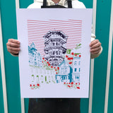 5 color silk screen printed flat poster (teal, navy, green, pink and gray)