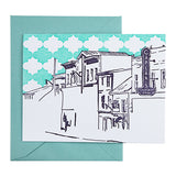 Ellicott City brings the days of old to our current time. This 2 color letterpress card illustrates the Fire House Museum in downtown Ellicott City, Maryland. There is a chevron pattern in the background and a short blurb about the history of Ellicott City on the back of the card.